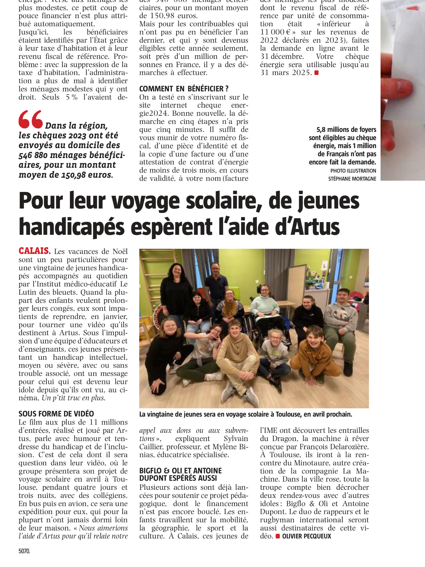 Les jeunes de l’IME voleront bien vers Toulouse fin septembre (Extrait du journal Voix du Nord 17-09-2025)