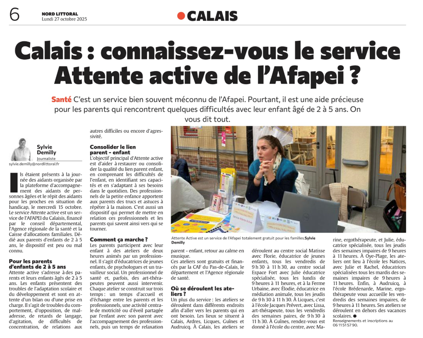 Calais : connaissez-vous le service Attente active de l’Afapei ? (Extrait du journal Nord Littoral 27-10-2025)